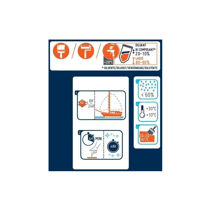 Dieser 1-Komponenten-Lack von Orangemarine ist ein glänzender Schlussanstrich auf Urethan-Alkydharz-Basis.