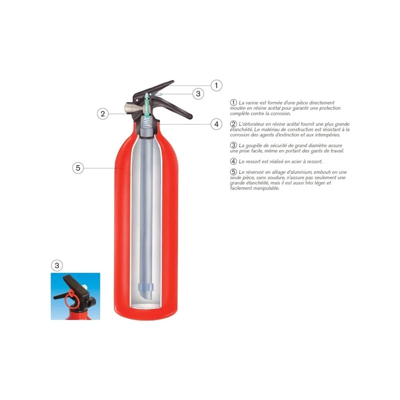Der Ventilschaft dieses Pulver-Feuerlöschers ist aus Acetalharz und mit einem Schutzfilter für empfindliche Elemente ausgerüstet, der einen kompletten Schutz gegen Korrosion bietet.