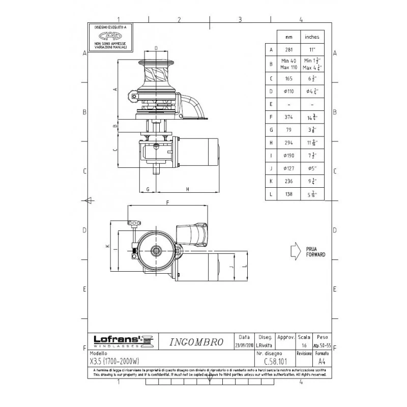 Die Ankerwinde LOFRANS’ X3.5 24V 1700 W mit Trommel, Edelstahl ist für Ankermanöver von Booten von 35 bis 45 Fuß (10 à 14 m) geeignet.