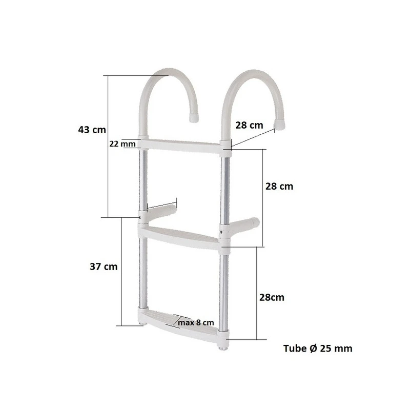 Diese Badeleiter für Boote ist mit 3, 4 und 5 Stufen erhältlich, um sich Ihrem Boot bestmöglich anzupassen.