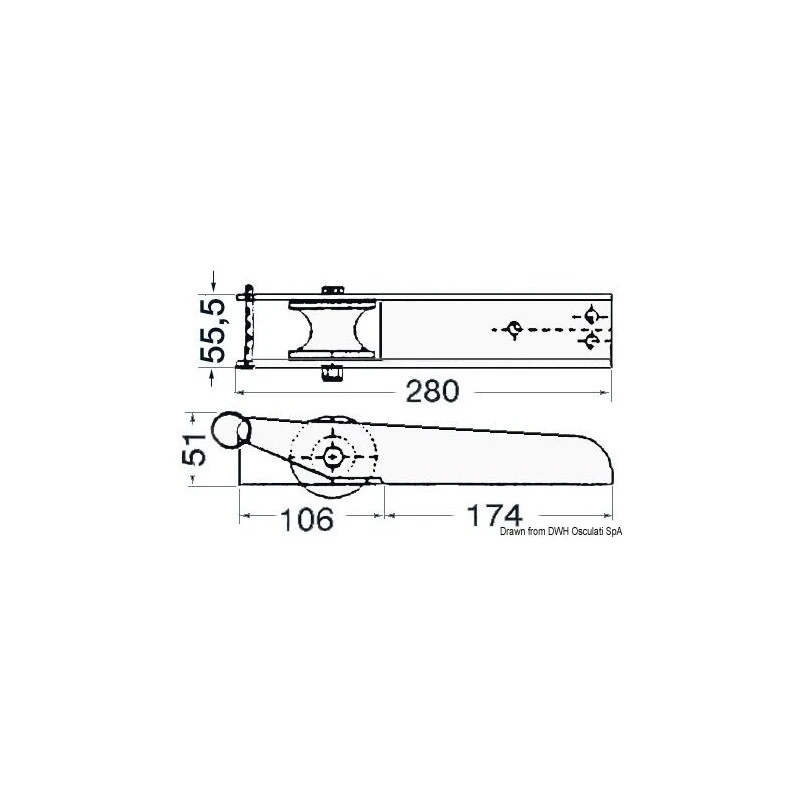 Bug-Ankerrolle aus satiniertem Edelstahl. Block aus Hartgummi. Diese Bug-Ankerrolle ist für ein Ankergewicht von maximal 15 kg ausgelegt.
