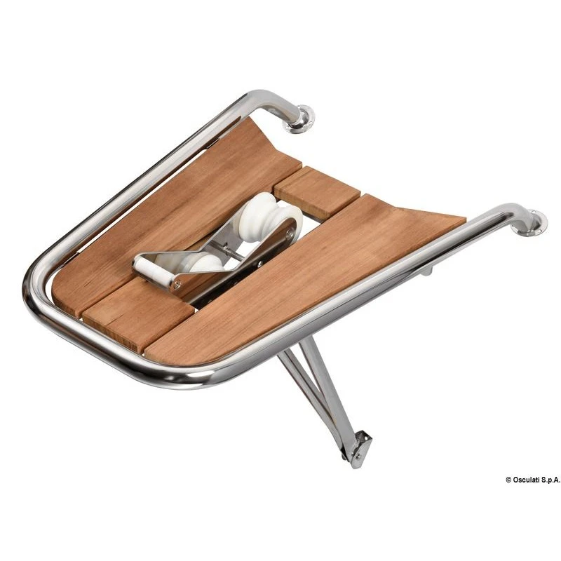 Trittfläche mit echten Teak-Leisten und Kipp-Bugrolle für Anker.