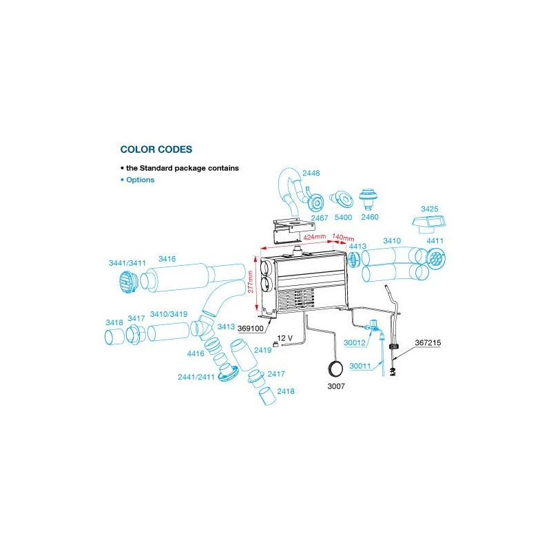 Achtung: Das Heizgerät Viking Air von Wallas wird mit einem Anschlussrohr für den Tank, einem Bedienpaneel, einer Wandhalterung und einem Stromanschlusskabel mit integrierter Sicherung geliefert (4 m).