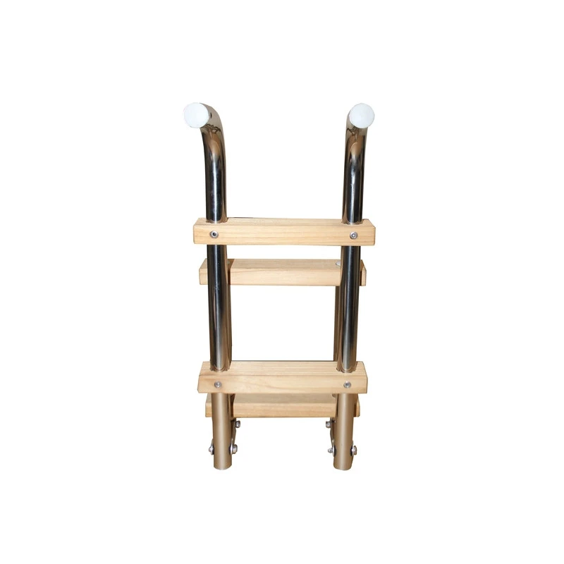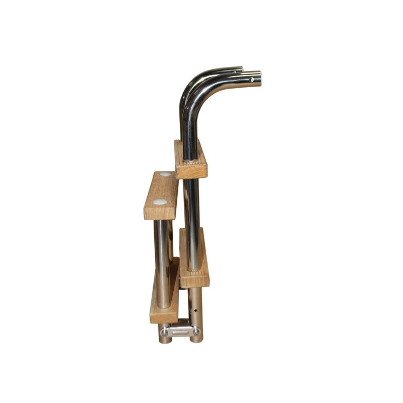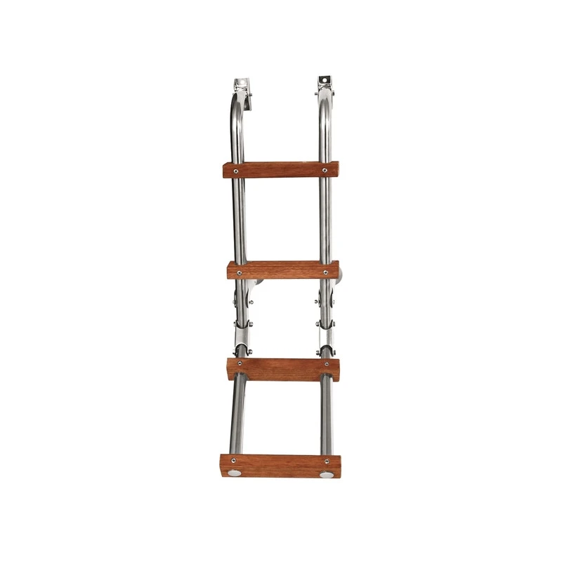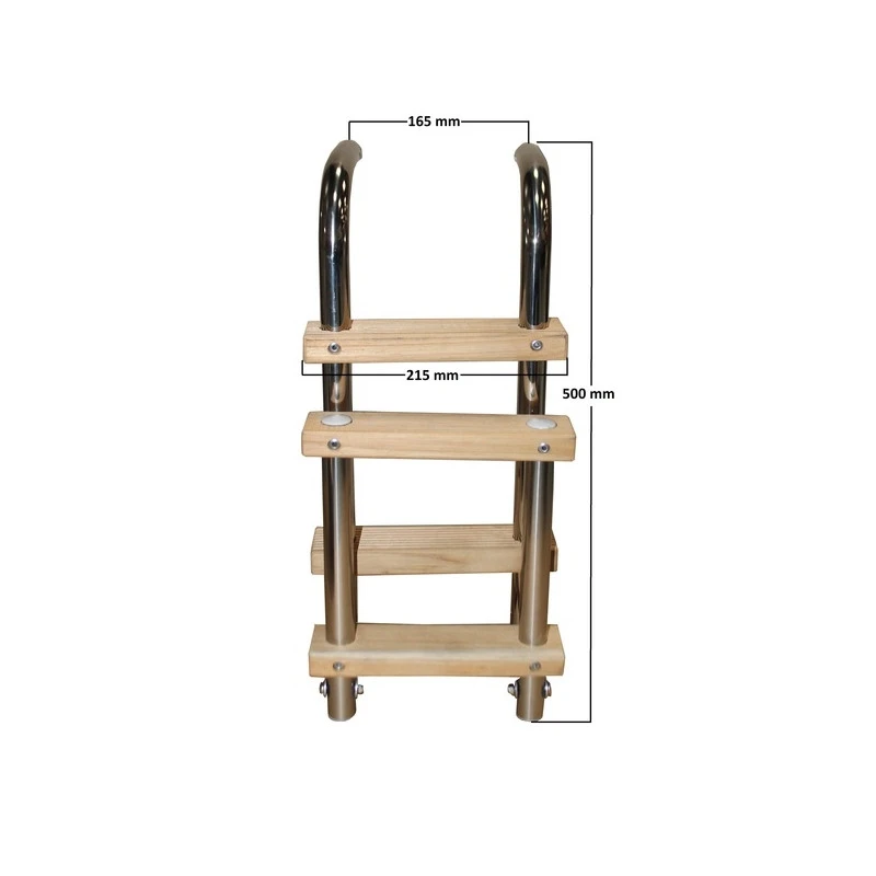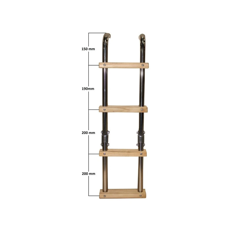 Edelstahl-Leiter mit Holzstufen, kleine Ausführung, zur Heckmontage.