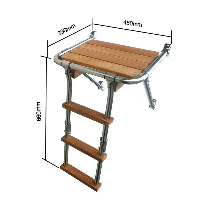 Edelstahl-Plattform mit Leiter einklappbar.