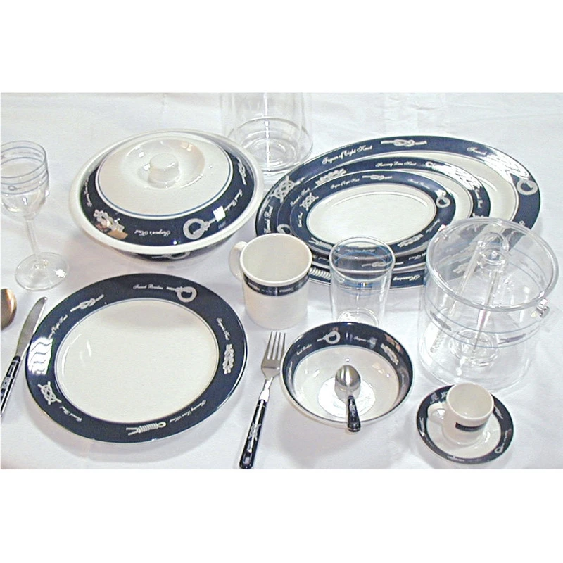 Großes Sortiment, leicht erneuerbar, erlaubt Ihnen, mit einem ausgesuchten Geschirr wie zu Hause zu speisen und ist angepasst an nautische Spezifikationen.
