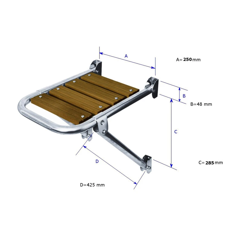 Hergestellt aus hochglanzpoliertem Edelstahl mit Trittfläche aus Teak-Holz.