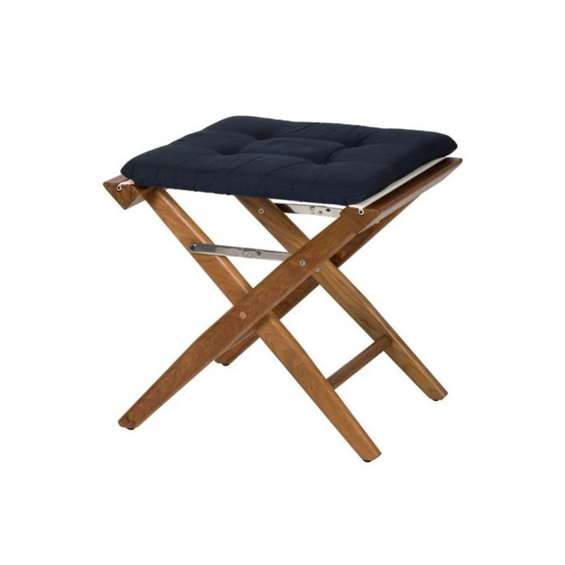 Dieser Klapphocker aus Teak mit gepolstertem Segeltuch des Herstellers Arc Marine bietet Ihnen einen zuverlässigen und komfortablen Sitz auf Ihrem Boot.