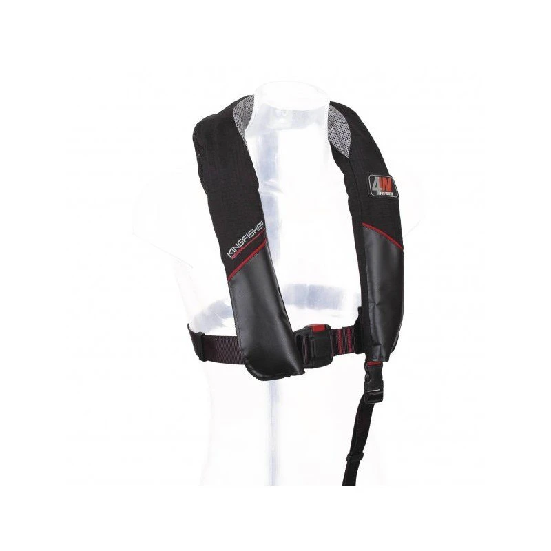 Kingfisher spezielle aufblasbare Angelweste, sehr leicht dank flexibler Blase und ultraflacher Faltung, ausgestattet mit einer kurzen Abdeckung für bessere Ergonomie.