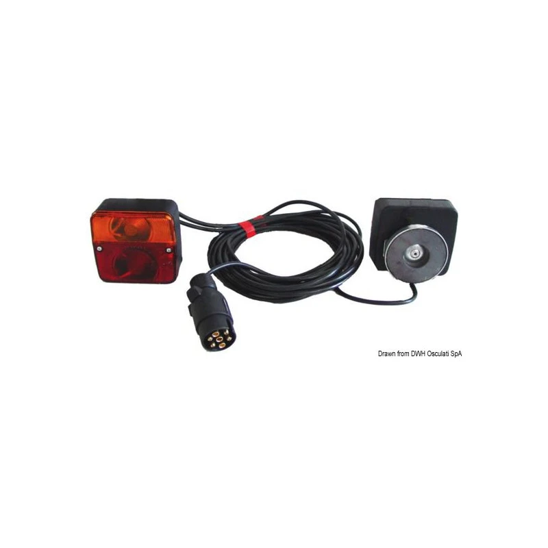 Zentrales Kabel 7,50 m mit 5 Polen. Kabel Licht – Licht 2,50 m. Licht rechts: Position + Stop + Richtungspfeil + Licht Kennzeichen. Licht links: Position + Stop + Richtungspfeil. Stecker 7-polig.
