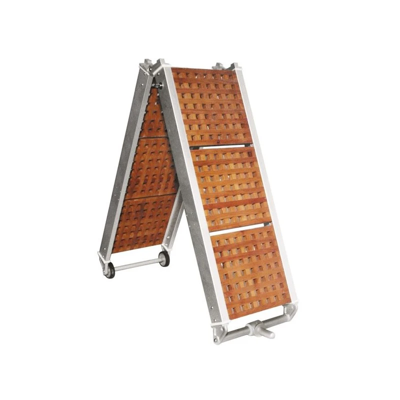 Klappbare Gangway für Boote, aus Holz, mit Aluminium-Rahmen.