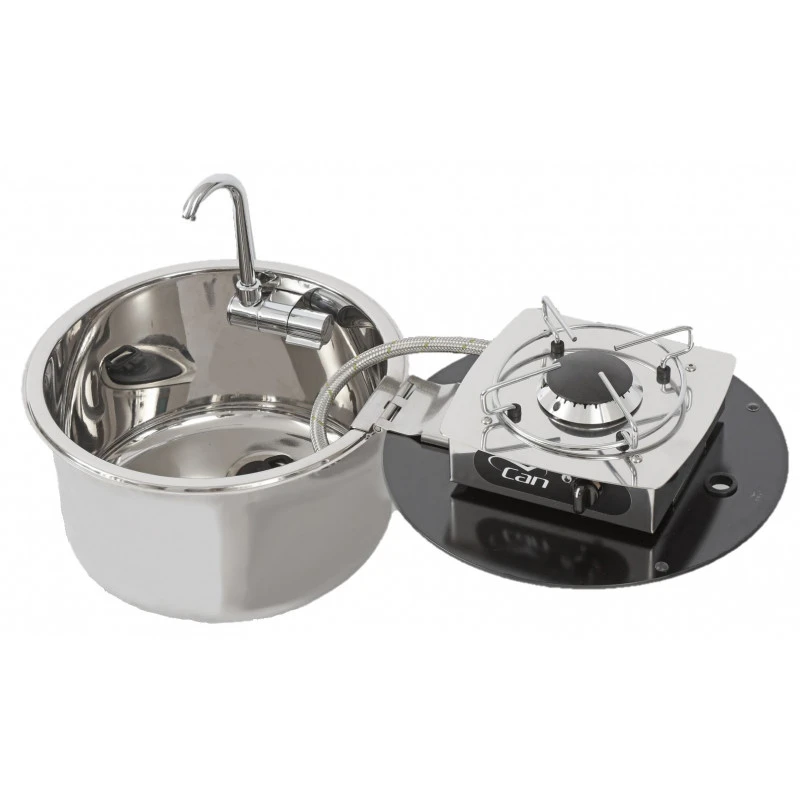 - Spüle + Kaltwasser-Hahn + 1-flammiges Kochfeld