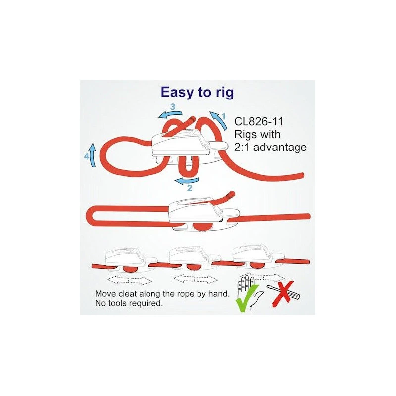 Diese Klemme der Marke Clamcleat ist aus Aluminium und Nylon.
