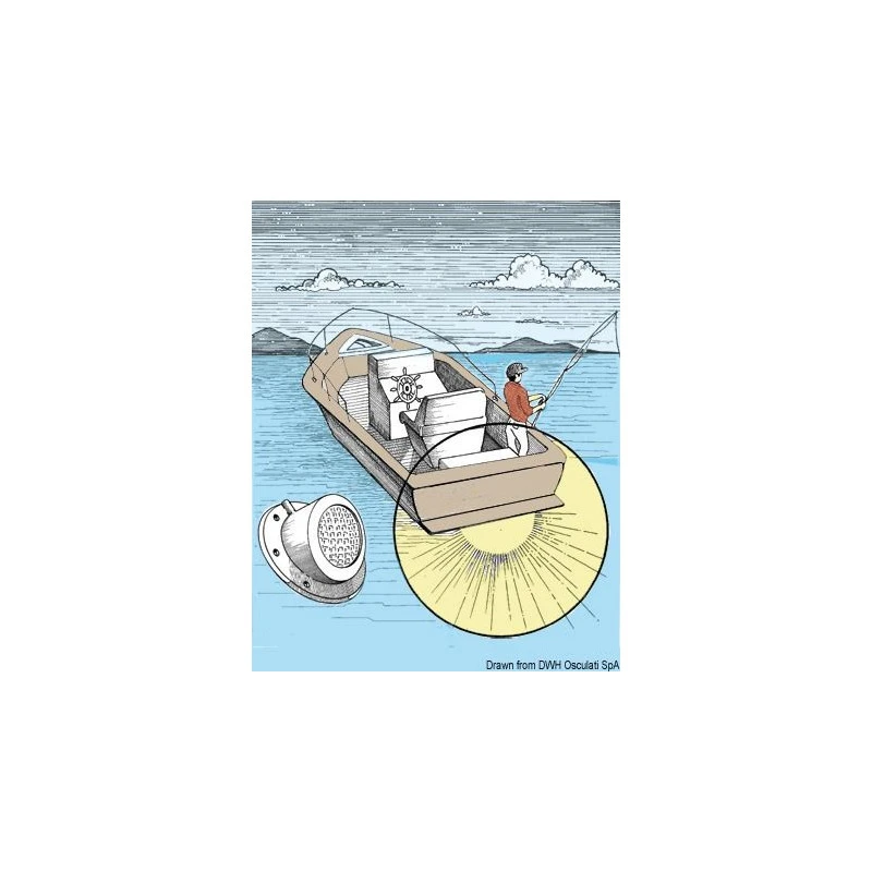 Mit Leuchtmittel Sealed Beam 14.249.07/08. Zum Einbau unter der Badeplattform, zur Beleuchtung der Wasseroberfläche. Komplett mit 1,20 m Stromkabel.