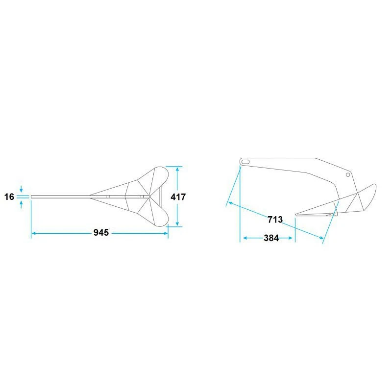Der sehr tief liegende Schwerpunkt des Ankers und seine besondere Geometrie garantieren sofortigen Halt.