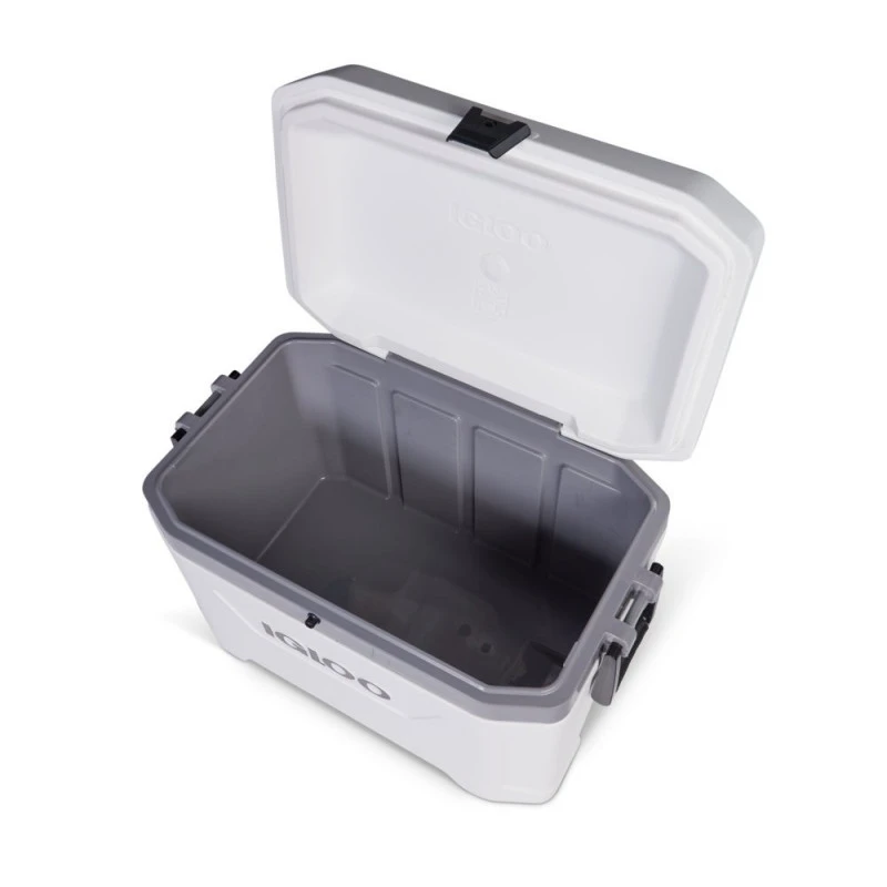 Die Kühlbox Marine ULTRA 54 von IGLOO ist perfekt für Wassersport- und Outdoor-Aktivitäten geeignet, da sie mit UV-Schutz, extra verstärkten Griffen, Scharnieren und Befestigungen aus rostfreiem Stahl ausgestattet ist.