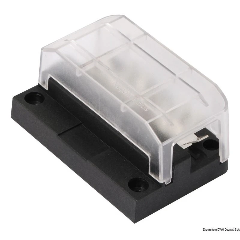 Dieser modulare Sicherungskasten ist für Standard-Stecker (ATP – ATO – ATC). Dieses Gehäuse ist mit Kontroll- LED Leuchten für jede Sicherung ausgestattet. Er wird mit 12 V oder 24 V betrieben und hat eine maximale Last von 20 A für jede Sicherung und 100 A insgesamt. Klebeetiketten werden mitgeliefert. p>