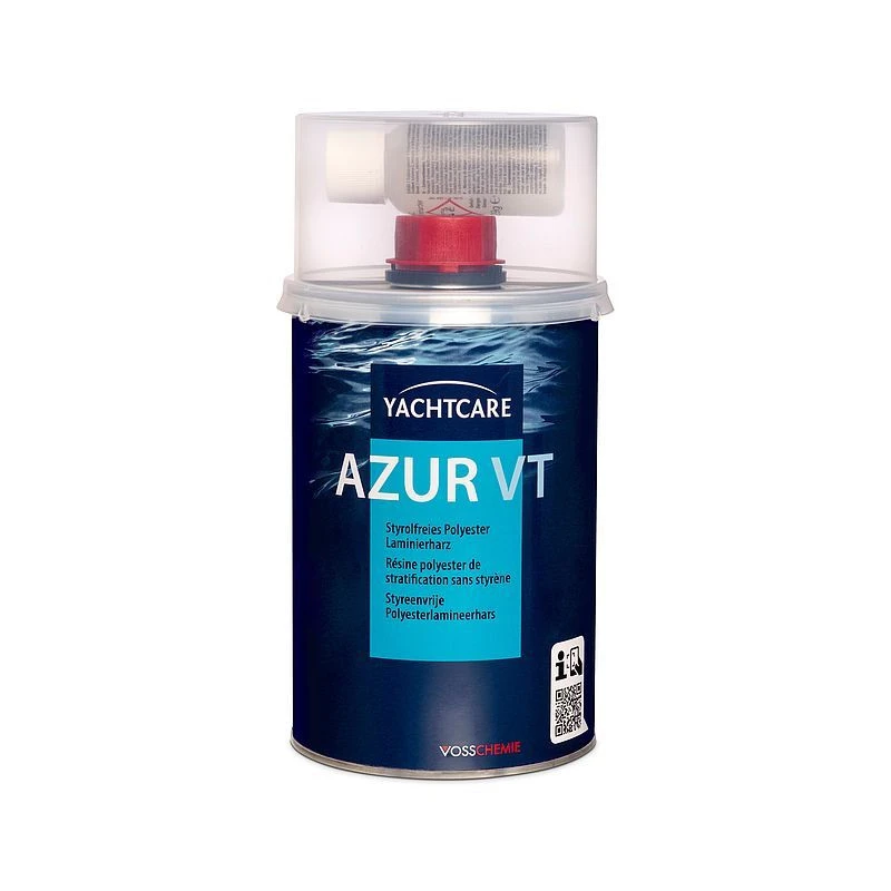 AZUR VT Polyester Laminating Resin ist ein styrolfreies, kobaltbeschleunigtes Polyesterharz. Es ist ein niedrigviskoses thixotropes Harz auf Basis von Orthophthalsäure, das für mittlere Beanspruchung geeignet ist. Dieses Harz härtet durch Zugabe von 1 bis 3% MEKP-Härter aus. Es kann in mehreren Schichten, nass in nass, bis zu 7 mm dick aufgetragen werden. Dieses Harz zeichnet sich durch eine begrenzte Reaktionstemperatur während des Härtungsprozesses aus, wodurch dickere Laminate gehärtet werden können.