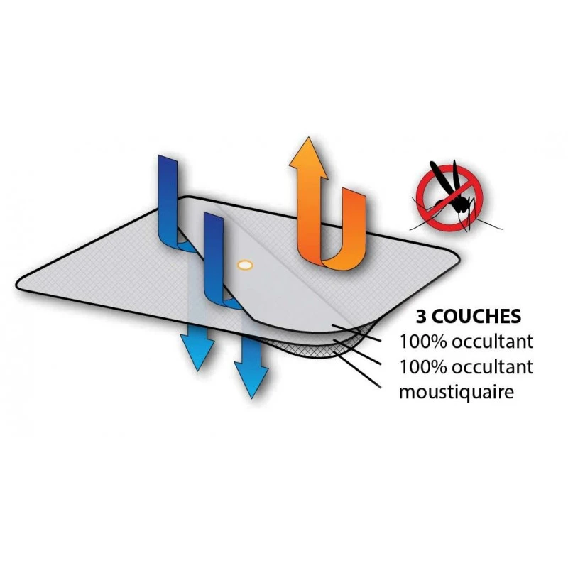 Die Verdunkelungsvorhänge bestehen aus 3 Schichten verschiedener Materialien, die es dem Licht ermöglichen, nach außen zu reflektieren (silberne Farbe), Luft durchzulassen und schließlich Mücken zu blockieren (weiße Farbe, die sich in das Futter einfügt).