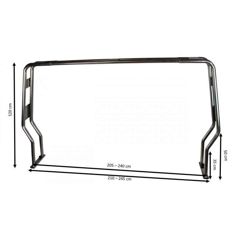 Dieser klappbare Roll-Bar passt sich an alle Schiffsarten, sogar an Festrumpfboote an, wenn Sie ausreichend Platz zur Fixierung haben.