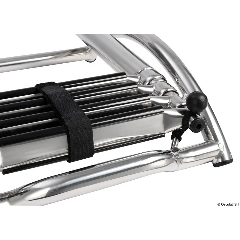 4-stufige Leiter aus hochglanzpoliertem Edelstahl.