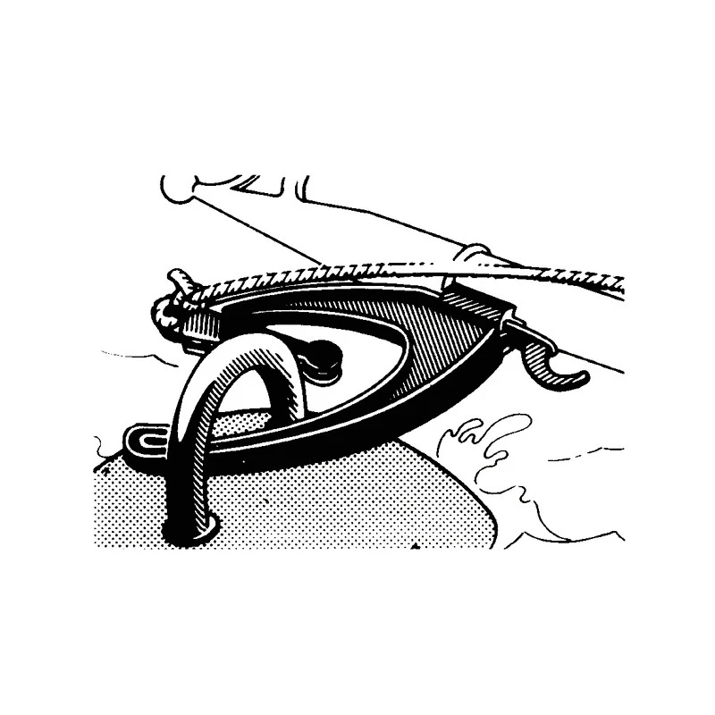 Er ermöglicht auch das Festmachen oder Lösen einer Haltleine an einen Ring der Ankerboje oder am Quai mithilfe eines Bootshakens, auf welchem das Gerät befestigt werden soll.