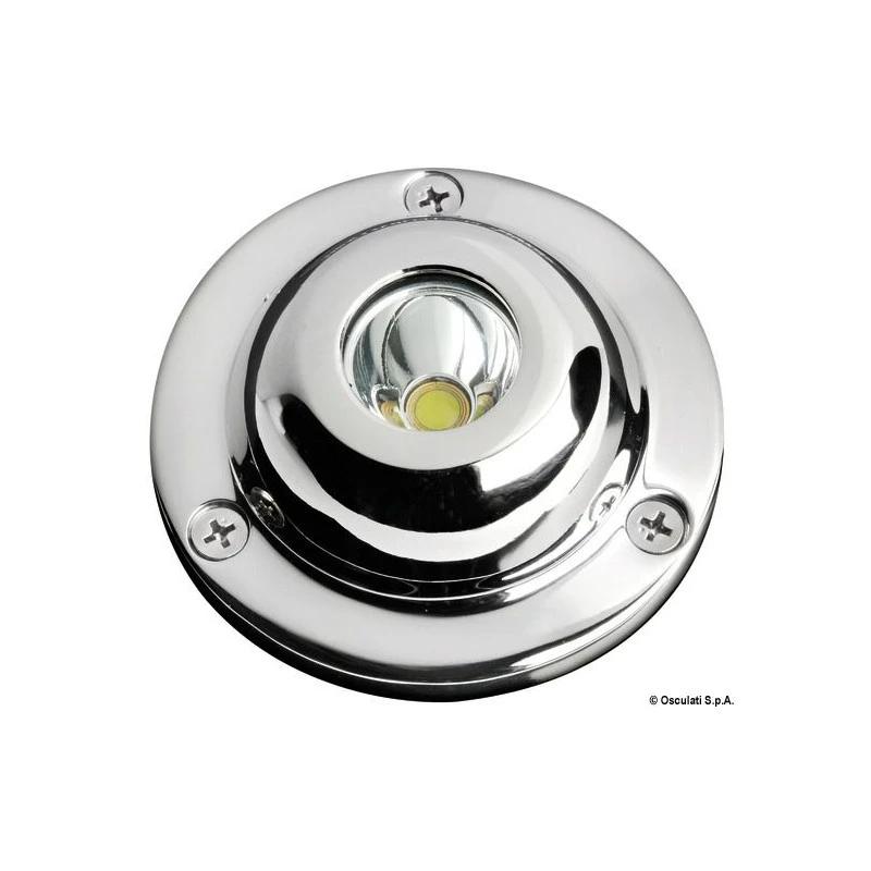 Hergestellt aus hochglanzpoliertem Edelstahl AISI 316 mit einer 5-Watt-Hochleistungs-LED. Völlig wasserdicht, kann auf oder unter Wasser montiert werden.