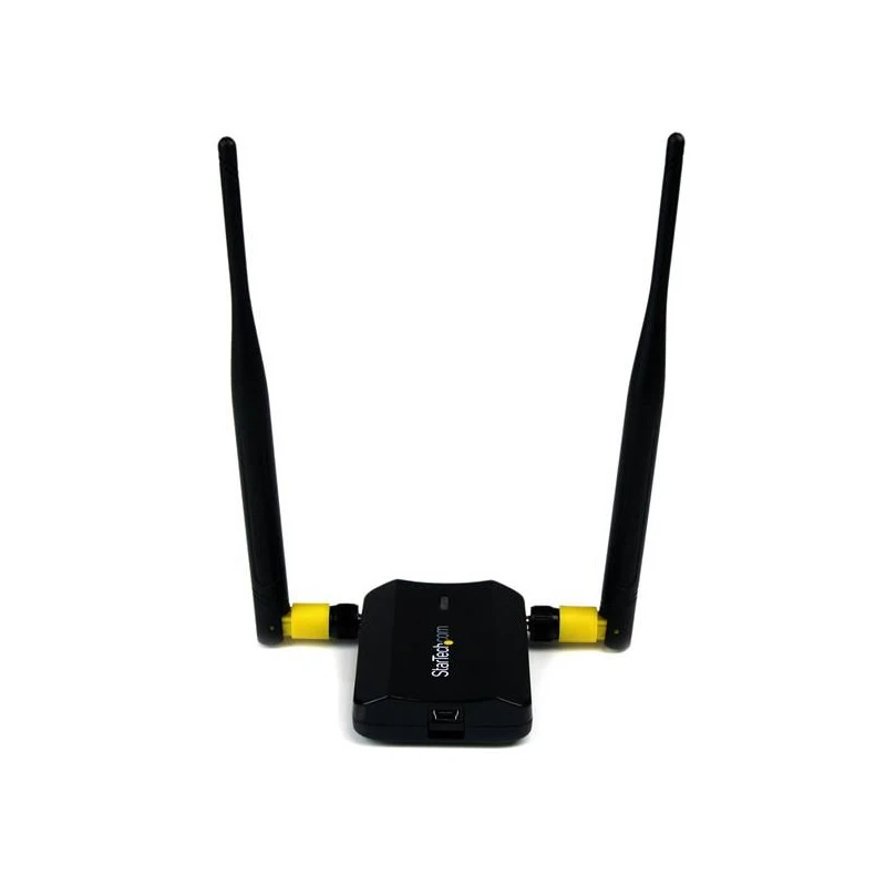 Der Adapter kann für die Verbindung mit den kabellosen Netzen A, B, G oder N genutzt werden. Er ist an zwei Antennen mit hohem Gewinn von 5 dBi und an sich selbst mit Energie versorgenden Verstärkern angeschlossen, um einen optimierten Empfang zu sichern, der bis zu 300 Mb/s Frequenz-Bandbreite unterstützen kann auf EntEisennungen, die bis zu drei Mal größer sind als die eines Standard-WiFi- Adapters.
