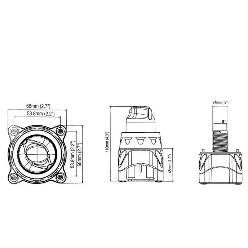 – Abmessungen: 102 x 102 x 90h mm (4 x 4 x 3,5h Zoll)