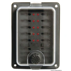 Diese wasserdichte Halterung für Flachstecksicherungen hat Platz für 10 Flachstecksicherungen mit rückwärtiger Öffnung und Platz für 6 Ersatzsicherungen. Funktioniert bei 12 V wie bei 24 V. Dieses Gehäuse mit Gummidichtung für Halb-Einbau ist auch mit LED-Kontroll-Lampen ausgestattet, die schnell durchgebrannte Sicherungen erkennen lassen. Dieses Gehäuse ist nur für Sicherungen mit 25 A oder weniger gedacht.