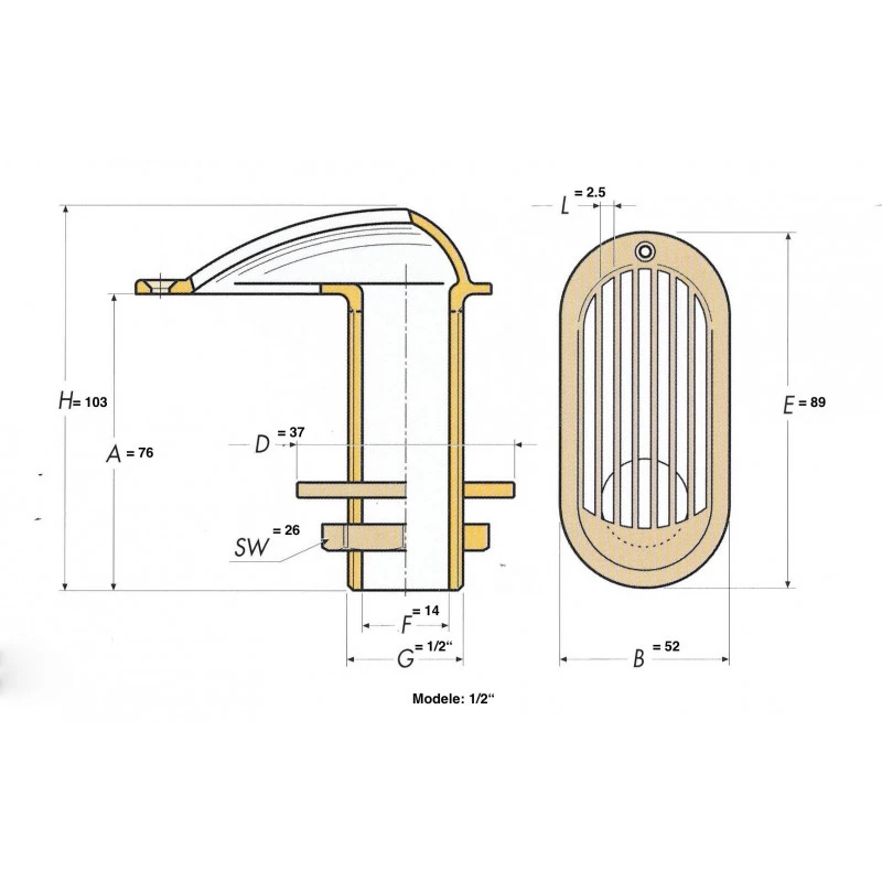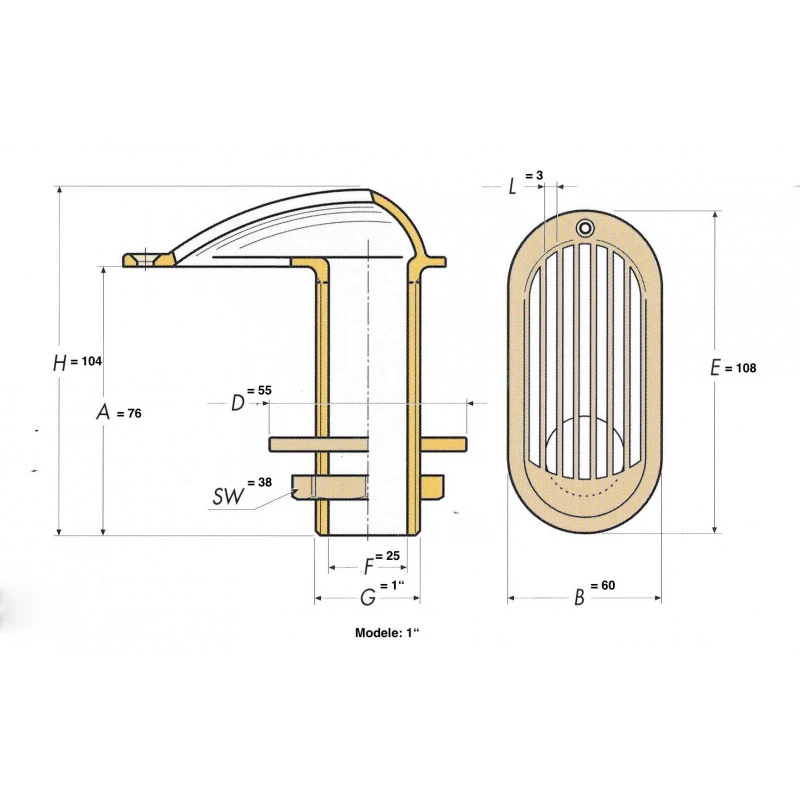 Dieses Wassereinlass-Sieb aus Messing wird durch den Rumpf eingesetzt und dient der Ableitung von Flüssigkeiten.