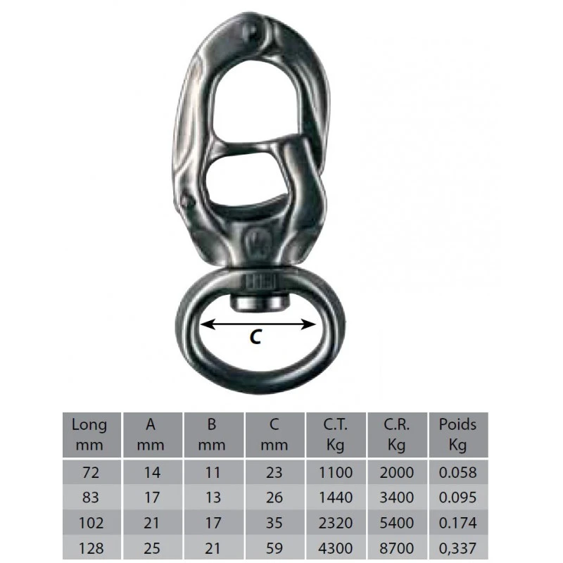 - Gesicherter Verschluss : die Spezifische Form der Klinke ermöglicht eine Verminderung der Massenträgheit zum Verhinderung eines unfreiwilligen Auslösens insbesondere im Fall von Aufprall während der Spannungsverteilung limitiert eine Auslösung unter Last.